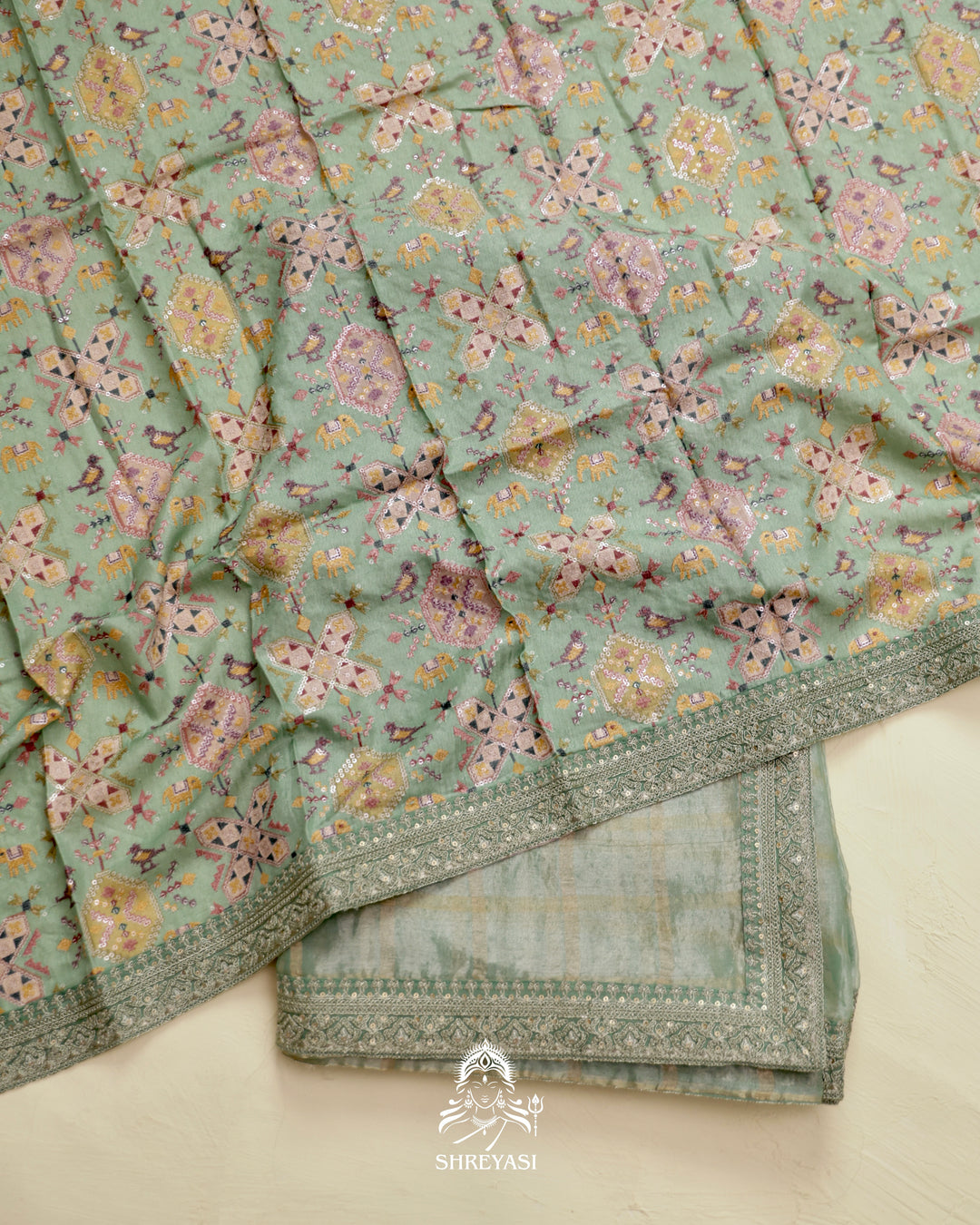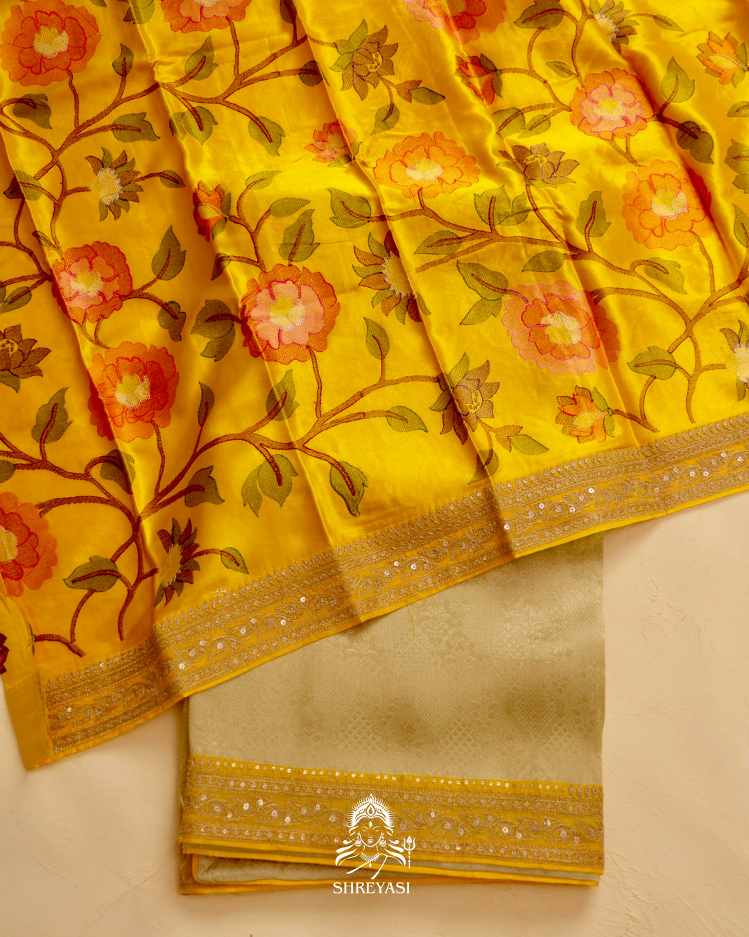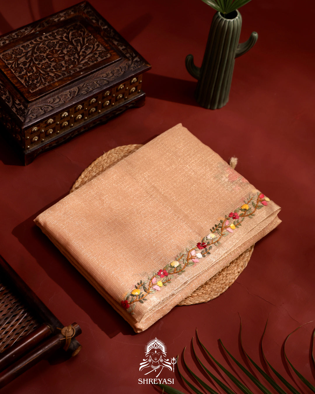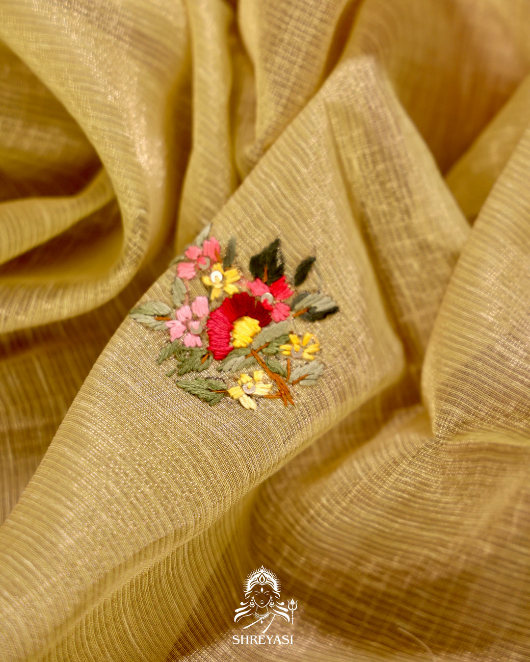 Pure Banarasi Crushed Tissue Saree with Scalloped Embroidery