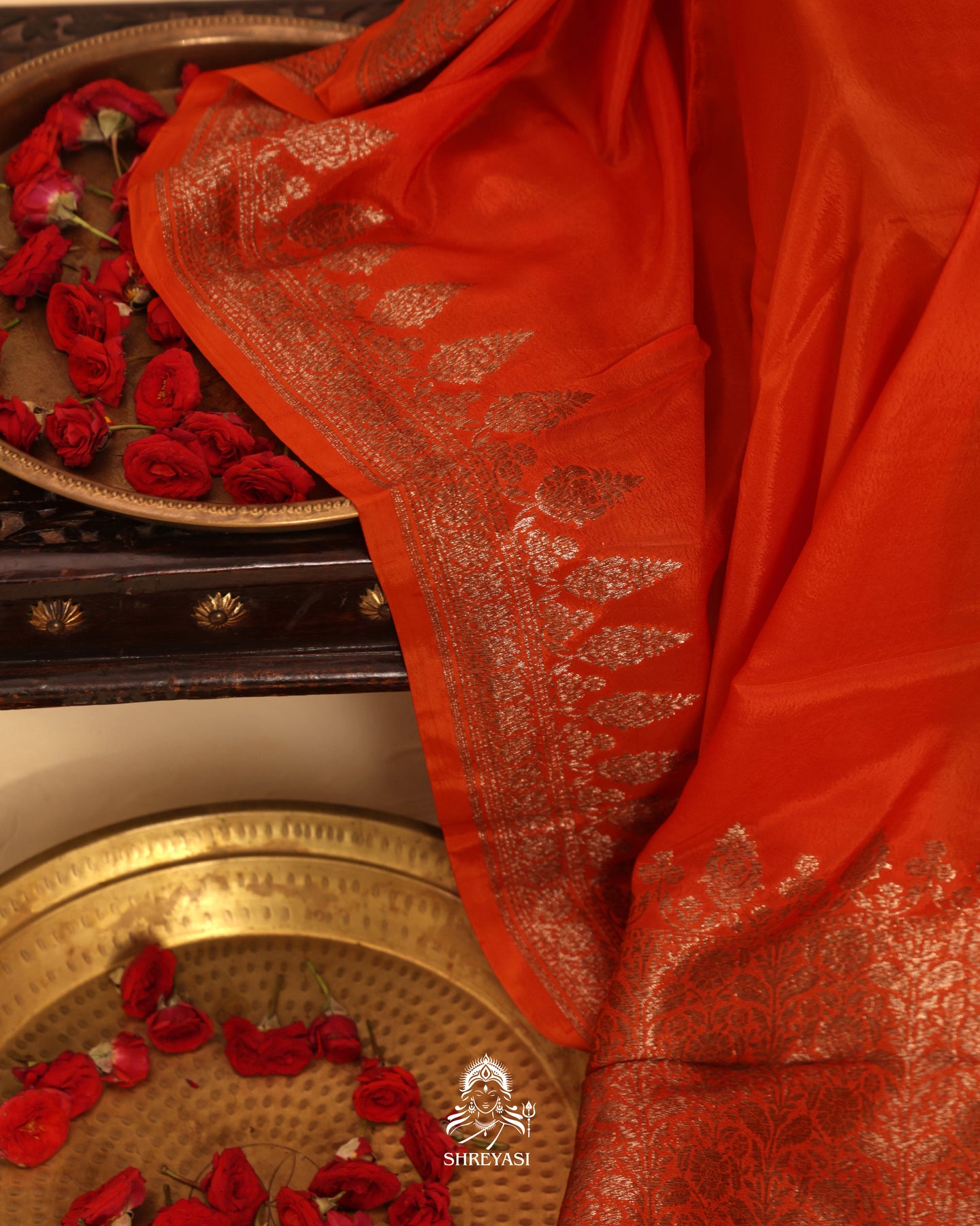 Banarasi Crepe Silk Saree with Floral Embroidered Blouse