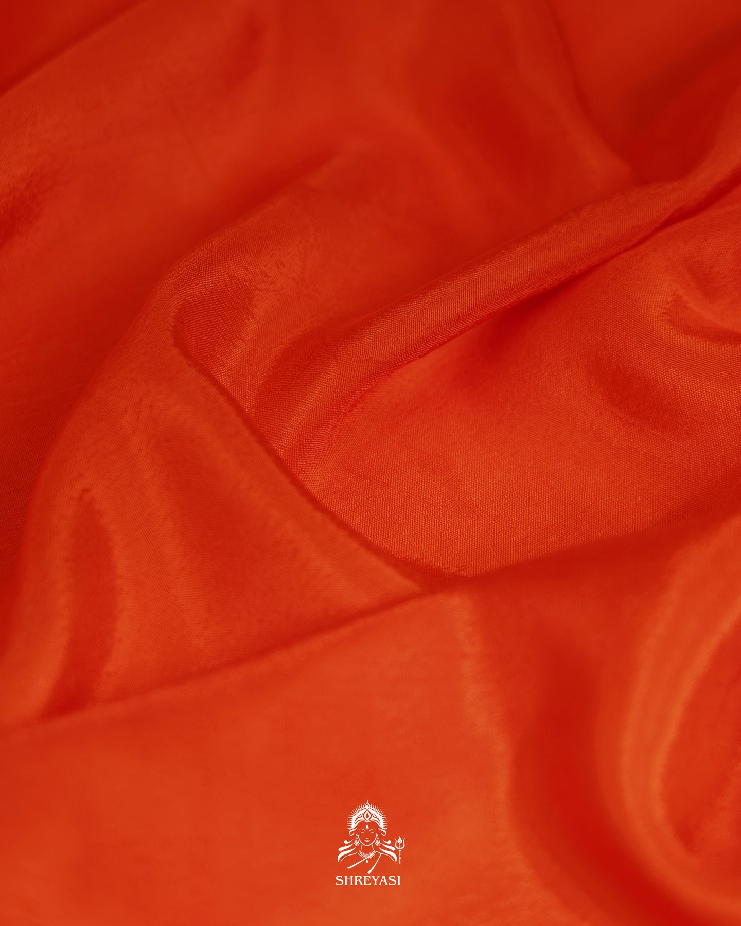 Pure Banarasi crepe silk with a soft, fluid drape and classic zari borders inspired by traditional Banaras motifs. Lightweight yet rich, the saree carries a subtle sheen and elegant movement. Paired with a contrast floral blouse finished with delicate maggam embroidery along the neckline and sleeves, bringing a contemporary touch to a timeless weave.