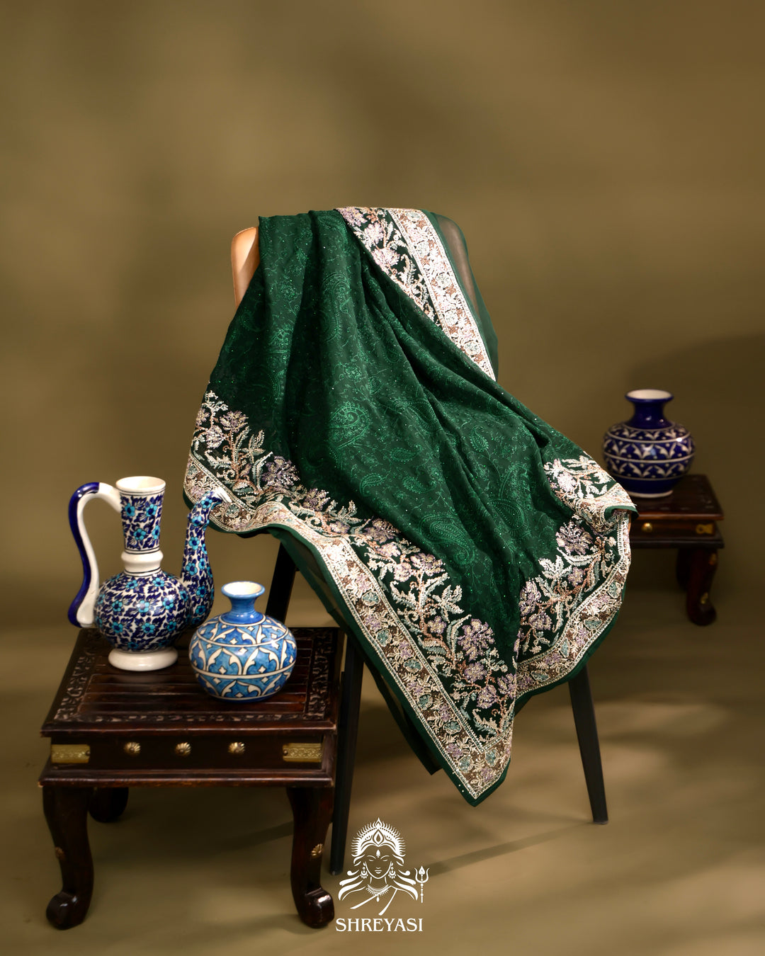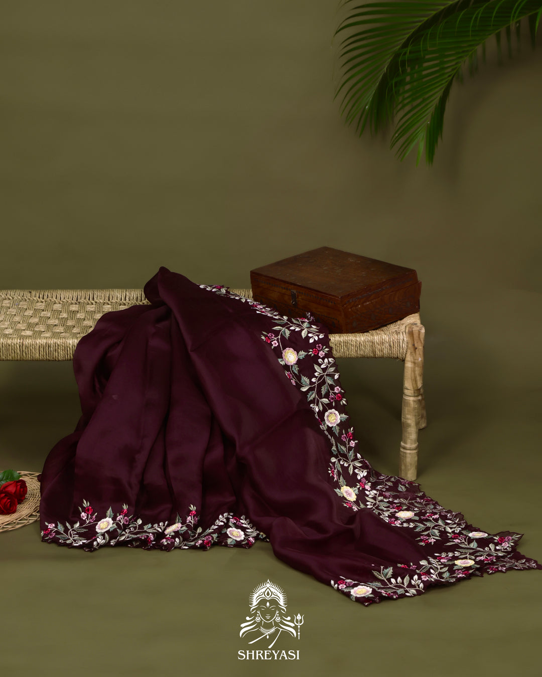 Banarasi Crepe Silk Saree with Floral Embroidered Blouse
