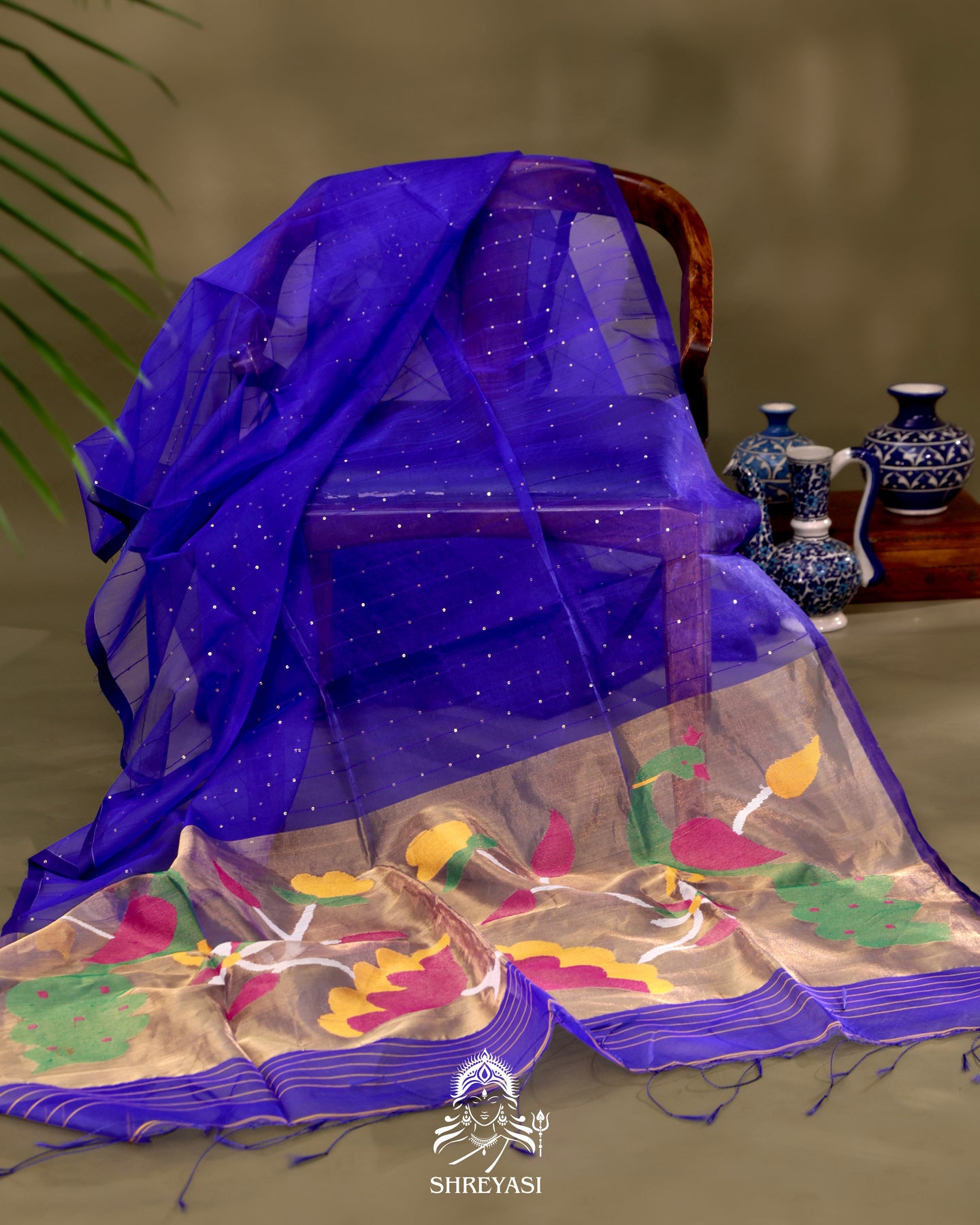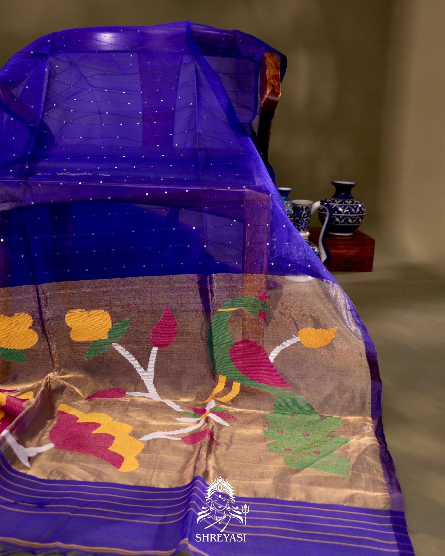 Muslin Jamdani Saree with Needle Weaving and Paithani Tissue Pallu