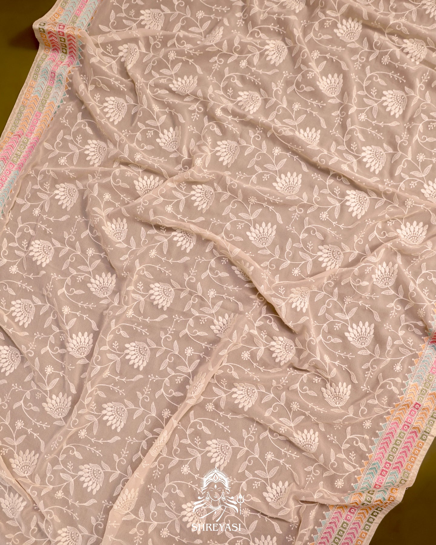 Georgette Saree with Chikankari Inspired Embroidery