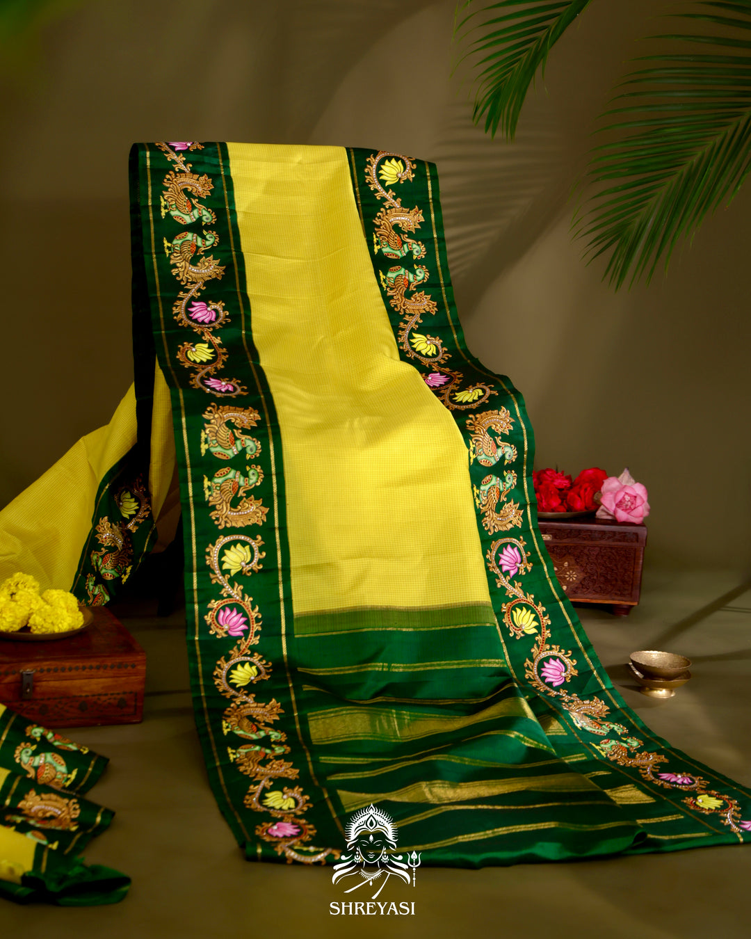 Kanjivaram Silk Saree with Tanjore Artwork