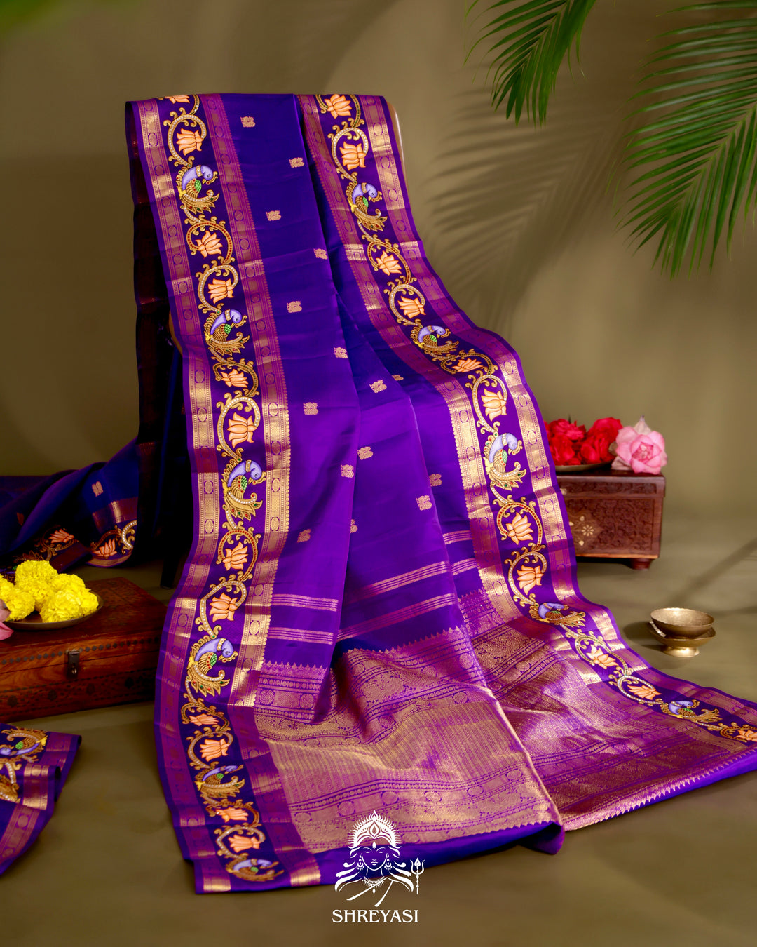 Mysore Silk Saree with Tanjore Design Border and Pallu