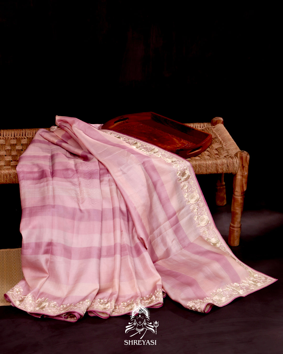 Tussar Silk Saree with Floral Design and Pita Embroidery