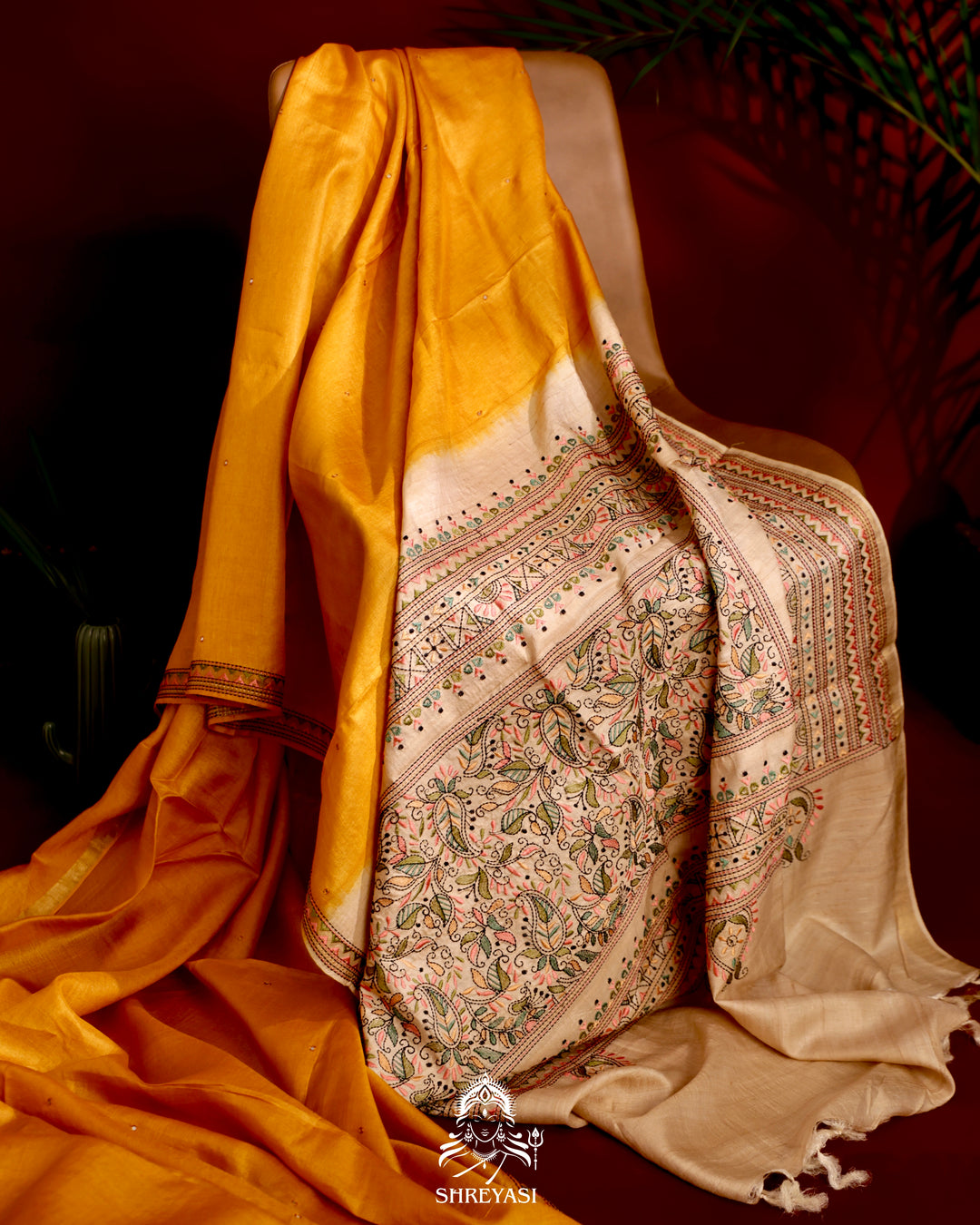 Vidarbha Tussar Silk Saree with Pen Kalamkari Artwork