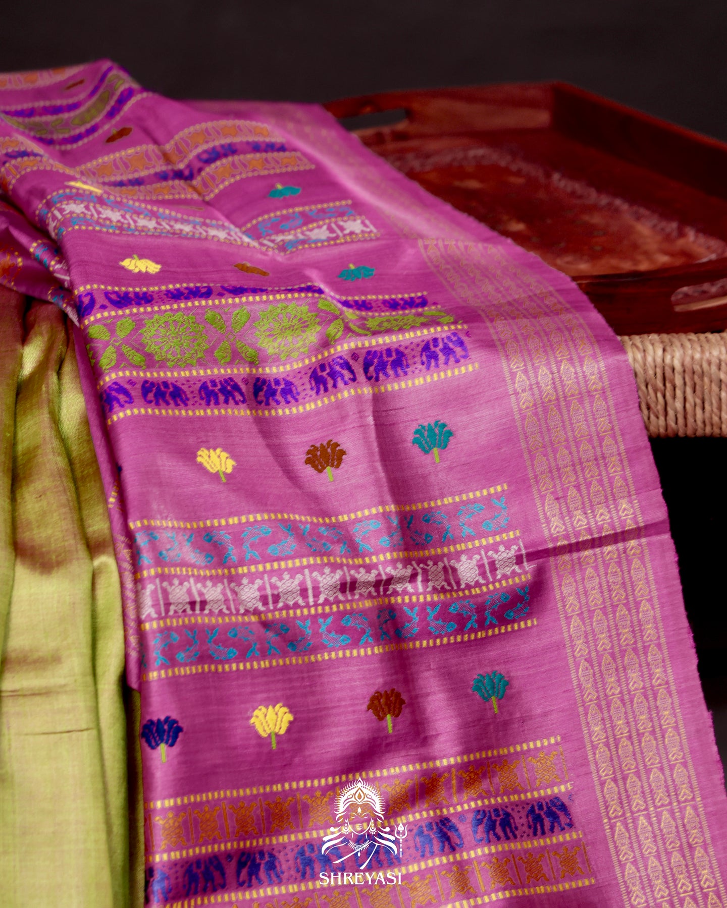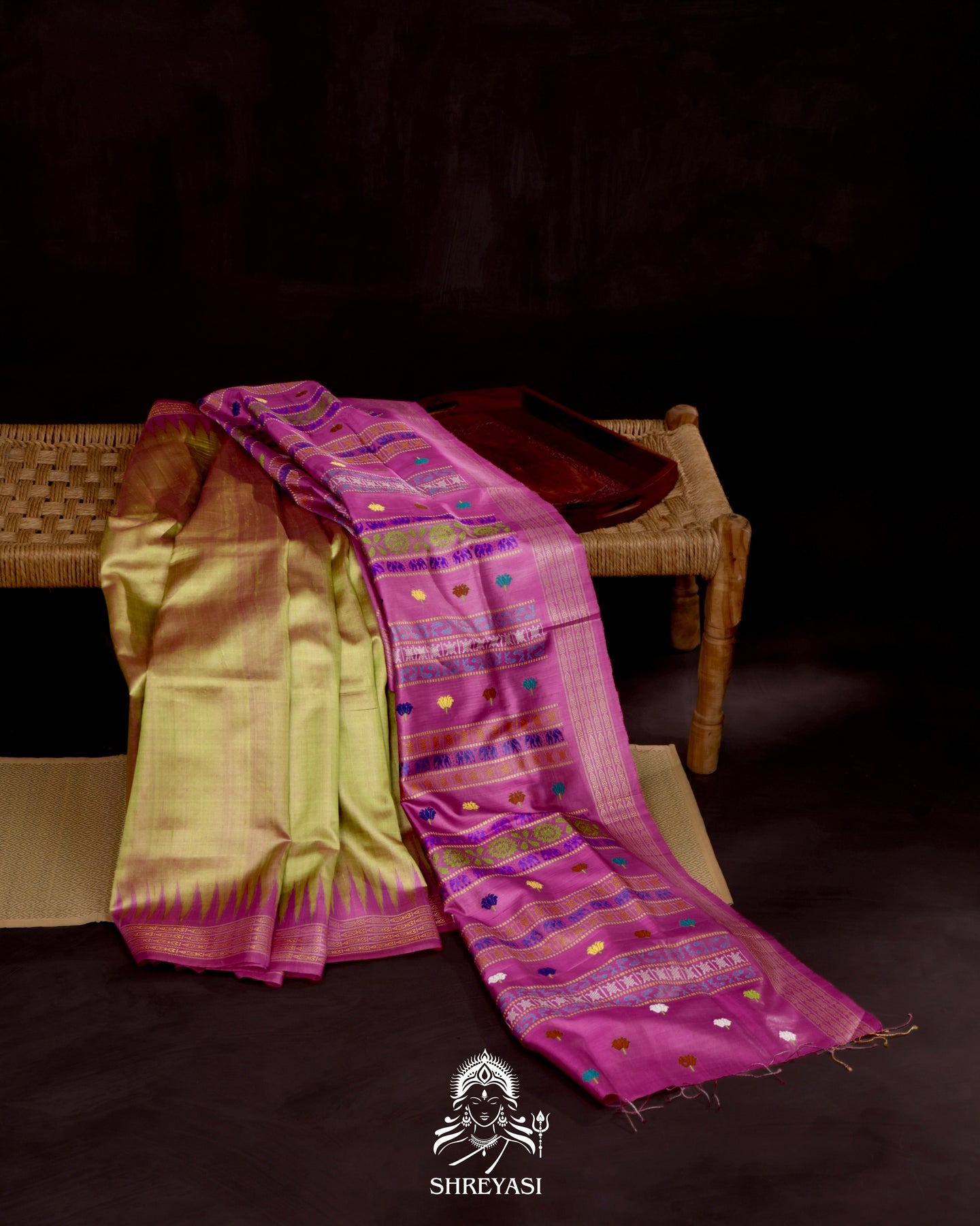 Crafted on traditional pit looms, every saree takes days of patient weaving, reflecting a slow, conscious approach to textile creation. The interplay between the body and pallu introduces contrast with discipline, allowing the design to feel composed rather than ornamental.