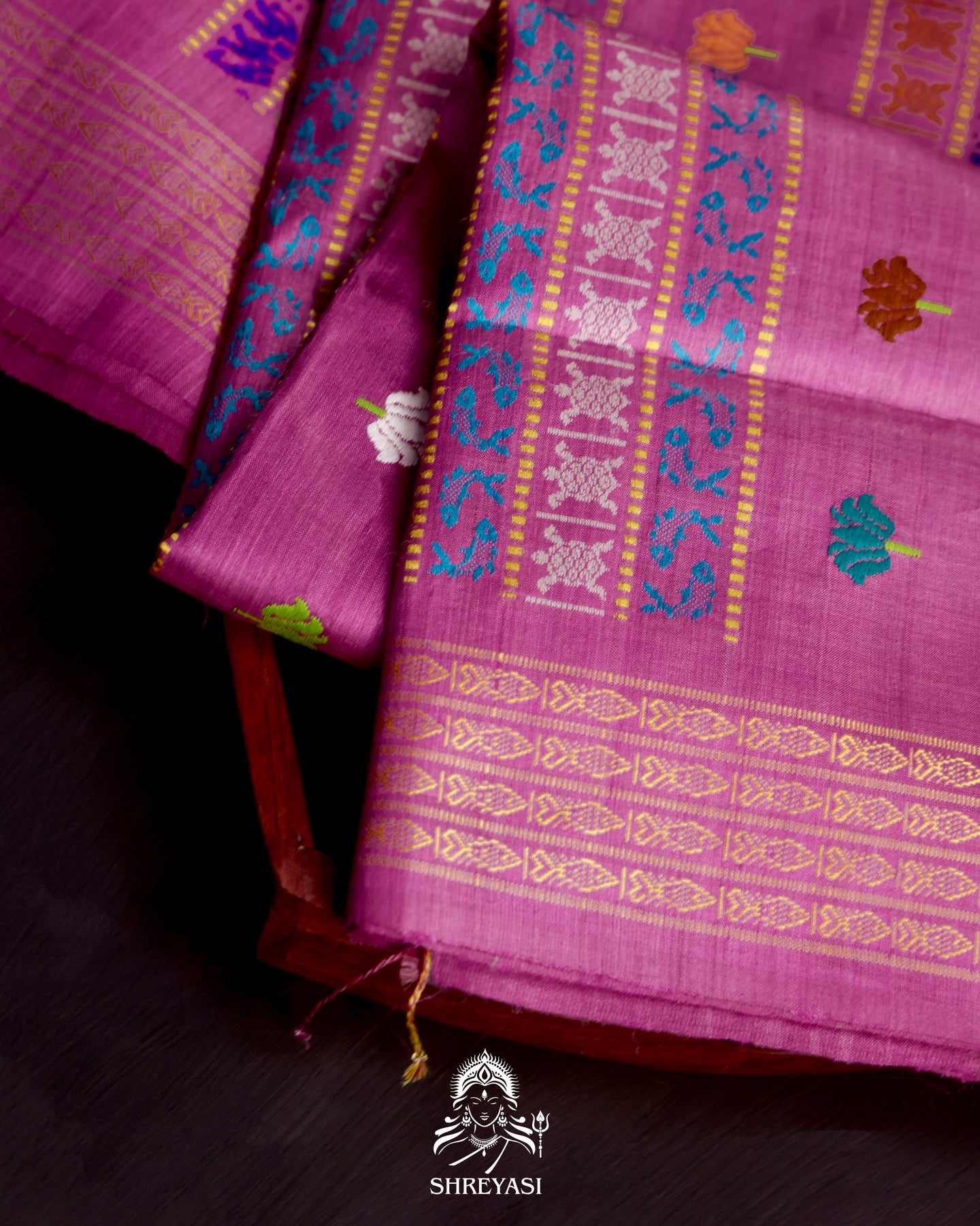 The defining feature of this saree is its fishbone border, locally known as macchha daanta. This serrated motif is a signature of Gopalpur weaving, structured yet rhythmic, framing the saree with a quiet architectural strength. It is not decorative excess, but identity rendered in pattern.